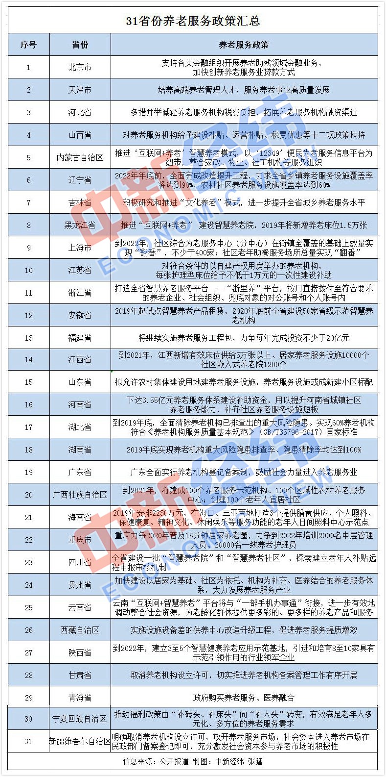 养老一直是人们最关注的话题之一,连日来,发改委、财政部、工信部、民政部等多部委相继发文,关注养老服务。与此同时,31省份也纷纷发力养老服务,工信部预计到2025年老年用品产业总体规模超过5万亿。