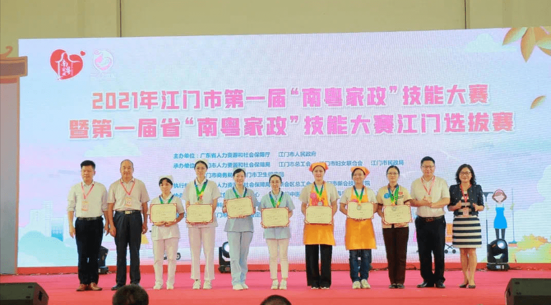 以赛代训也是江门市培育家政专业人才的重要举措之一。2020年,江门市共举办7场“南粤家政”技能竞赛区域选拔赛和1场全市总决赛,参赛人数405人,高级工考证人数211人,专项能力考证人数31人。今年4月,江门市还举办了第一届“南粤家政”技能大赛暨第一届省“南粤家政”技能大赛江门选拔赛,设置育婴员、家政服务员、养老护理员和医疗护理员四大赛项,最终8名选手将代表江门“出征”广东省赛。实施“南粤家政”工程以来,江门市涌现出一批又一批家政技术能手。