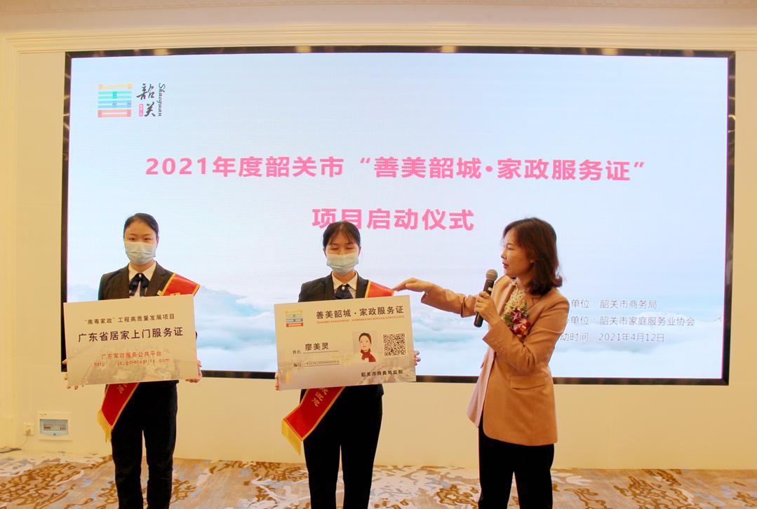 12日,韶关市商务局在碧桂园凤凰酒店召开2021年度韶关市“善美韶城·家政服务证”项目启动暨动员大会。该项目实行免费培训、免费发证,计划在2021年底完成5000名家政服务员职业素养培训并发放“善美韶城·家政服务证”,建立覆盖全市的家政服务员持证上岗模式,推进韶关市家政服务业信用体系建设。