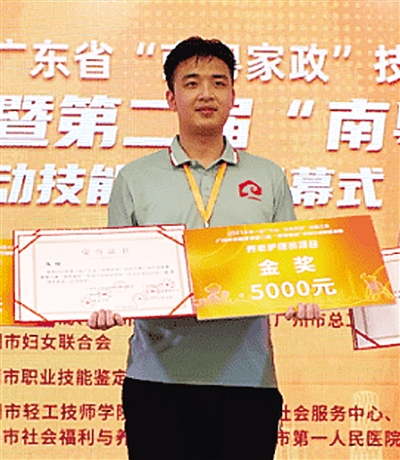 据了解,25岁的广州市老人院慈恩区护理班长马俊是本次推树活动广东唯一入围人选。他本是一名米其林餐厅的西餐厨师,4年前毅然辞职转行做起养老护理员。从最初的彷徨,到成为深耕护理一线、懂养老、懂老人的行家里手。在5月闭幕的2021年第一届广东省“南粤家政”技能大赛广州市选拔赛暨第二届“南粤家政”羊城行动技能竞赛中,马俊一举拿下金牌,成功入选“南粤家政”技能大赛广州集训队。同时,获得由广州市总工会颁发的“羊城工匠杯”金奖证书。7月26日-27日,他在广东省第一届“南粤家政”技能大赛中获得二等奖。