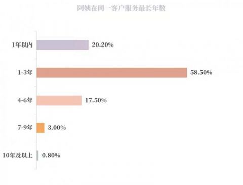 家政服务行业重视“工作经验”,调查数据显示,47.1%的家政阿姨有6年及以上的从业时长,表明家政服务行业的粘性在增强,待遇在改善,人员留得住、干得长,这也是家政服务业日趋规范化、标准化发展的良好体现。
