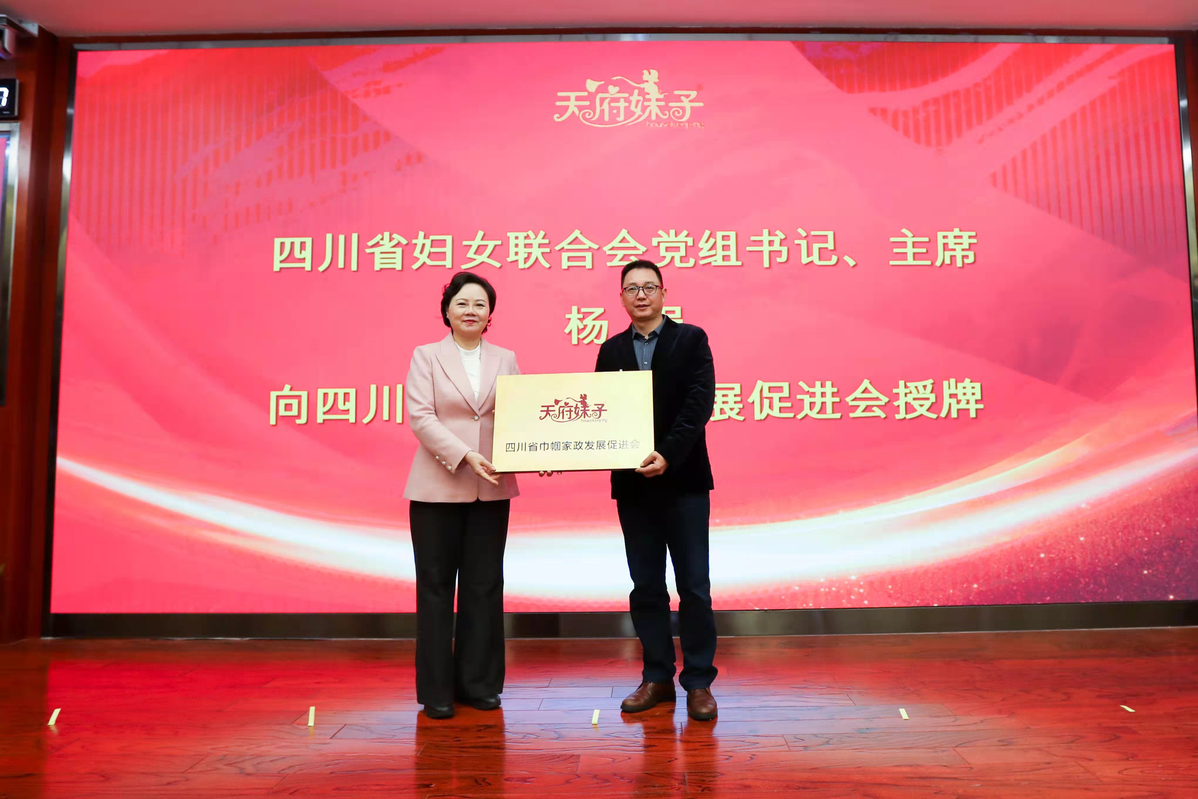 当日,四川省巾帼家政发展促进会(简称促进会)成立大会在成都召开。四川省妇联党组书记、主席杨娟向省巾帼家政发展促进会授牌。