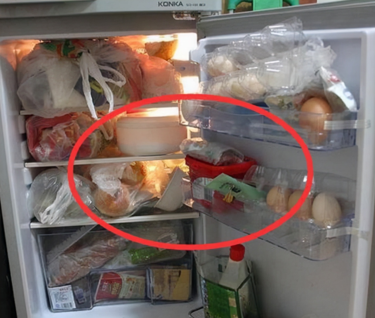 建议大家尽量不要在冷冻区放置带有明水的物品,不然明水在放在冷冻区内之后,很容易产生大量的冰块,也会导致整个冰箱内部出现结霜的问题。