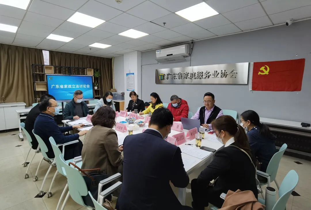 2022年2月18日,省商务厅召开《广东省家政服务条例》立法座谈会,广东省商务厅服贸处副处长田敏、科长林宏,广东省家庭服务业协会常务副会长兼秘书长李丽蓉、副秘书长陈健,惠州家庭服务业协会常务副会长、惠州拓普家政服务有限公司董事长欧阳骏良,广东省居家养老服务协会副会长、广州谷丰健康产业投资有限公司副总裁钟仕雄,广州千样好家庭服务有限公司董事长赖秋月,广州广府人家信息科技有限公司总经理冯恩荣,广州市南沙区老年教育协会会长李宝华,清远职业技术学院旅游家政与艺术学院教授、项目负责人王飞生,律师代表林塭丰、雇主代表孙清清、从业人员代表劳月红出席了会议。